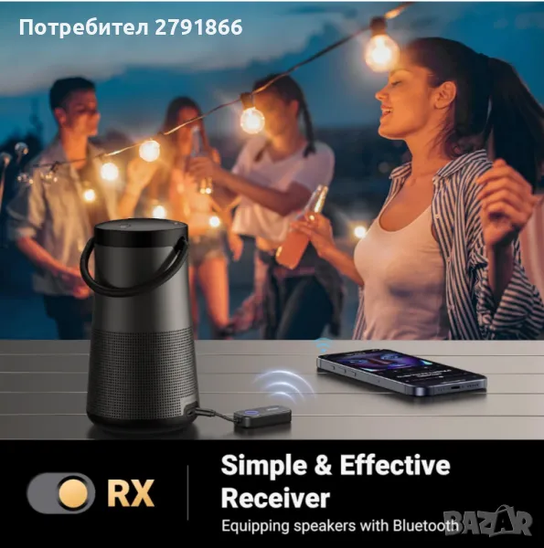 - 4. Устройства с кабел? Няма проблем: В режим RX вече не е нужно да се притеснявате за свързване към озвучителни системи за кола, лодка или фитнес оборудване. Използвайте Bluetooth приемника Ugreen, за да се свържете перфектно и да приемате аудио сигнали от вашия мобилен телефон, таблет, лаптоп и други.