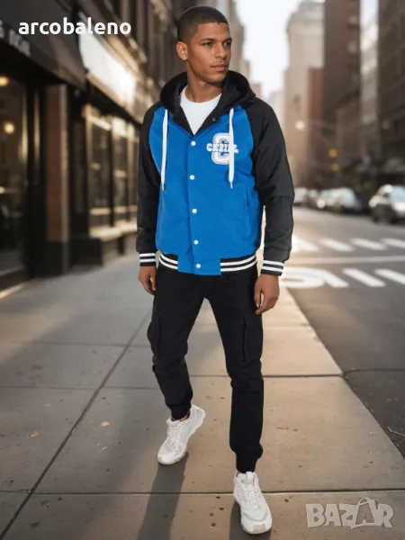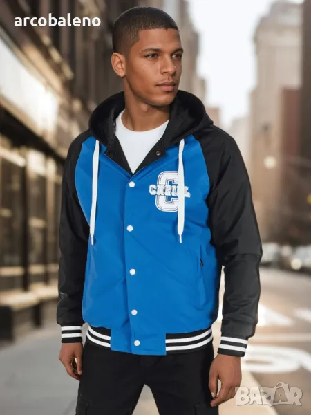 Мъжко двулицево бомбър яке с качулка, 2цвята