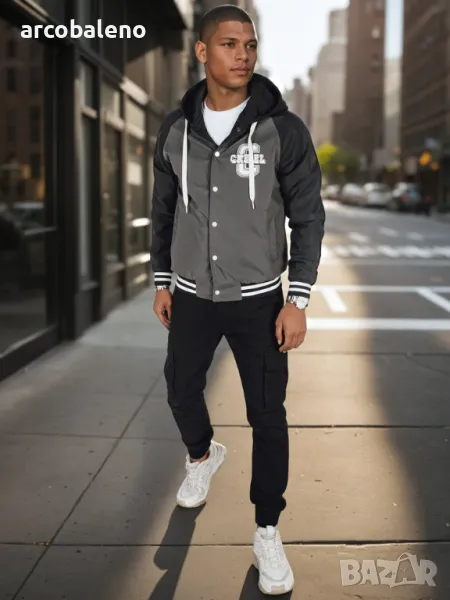 Мъжкото бомбър яке в модерен вариант е комбинация от шик и стил. Обратимият дизайн позволява регулиране за различни поводи. Удобните джобове, еластичните маншети и класическите копчета създават непреходна визия, вдъхновена от уличната мода. Задължителен артикул за любителите на небрежен шик.