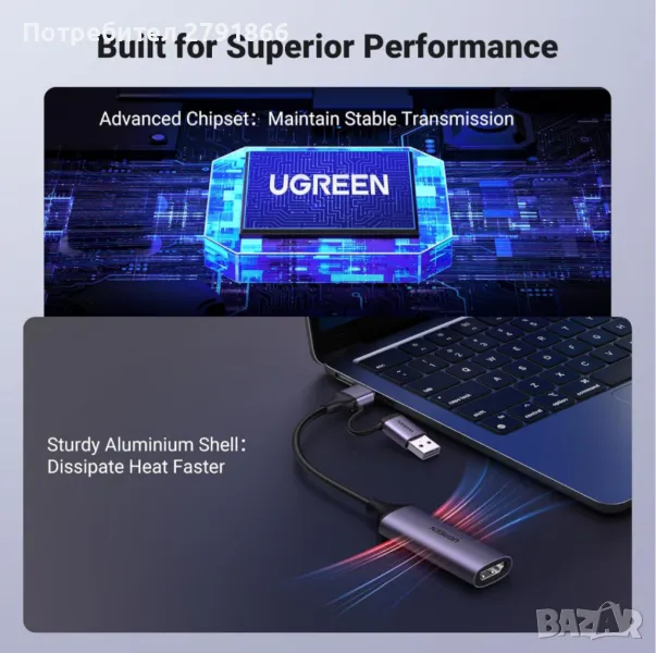 UGREEN Full HD 1080P 60FPS карта за заснемане HDMI към USB A/Type C 4K
