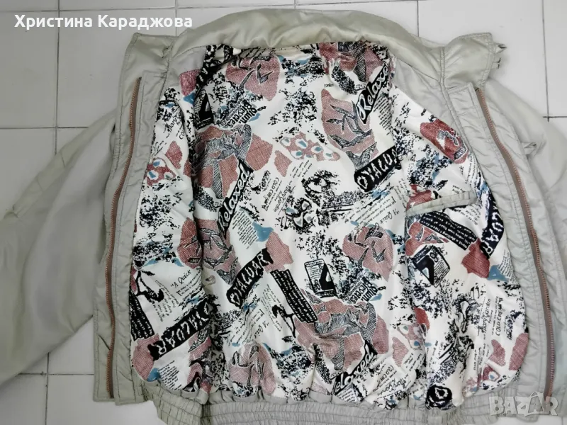 Дамско спортно яке за пролет и есен. Цвят екрю. Размер L. Има лека подплата и вътрешен джоб. Якето е красиво и много запазено.