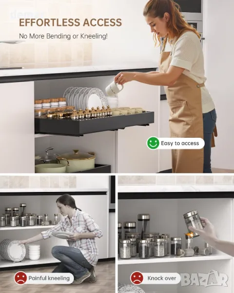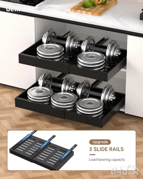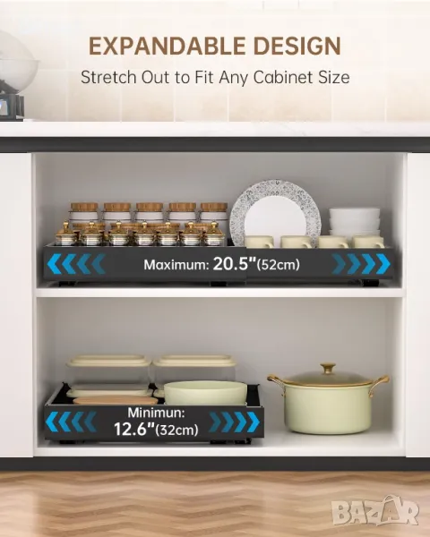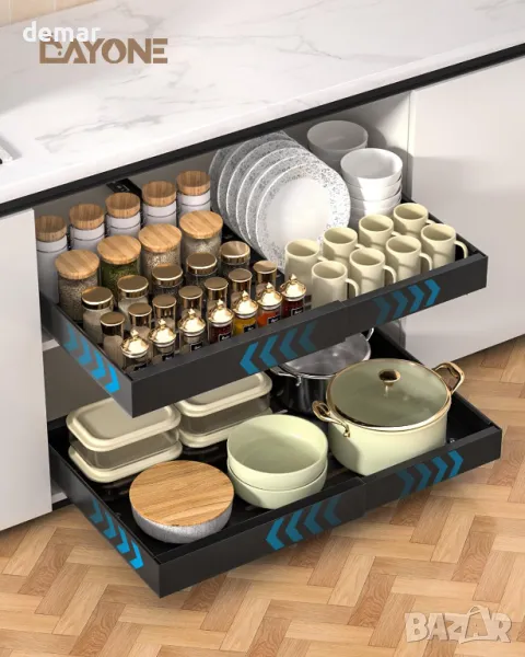 DAYONE 2 броя издърпващи се органайзера за шкафове, черни, въглеродна стомана 32-52 см, регулируеми