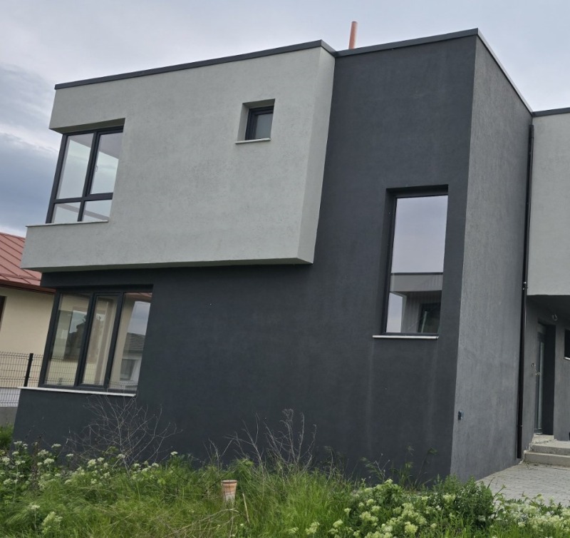 - на втори етаж: спалня със собствен санитарен възел, втора спалня, детска стая.