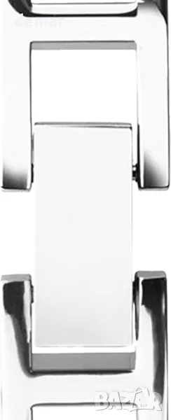 Този часовник е с правоъгълен сребрист корпус с размер 17 мм, съчетан с розов циферблат, тънка кожена каишка, украсена с розови кристали, и сребърна месингова гривна. Водоустойчив е до 30 метра и работи с надежден японски кварцов механизъм за точно отчитане на времето.