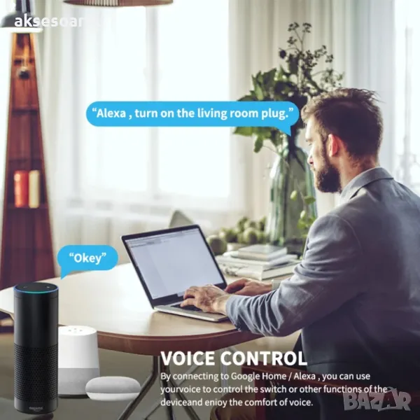 Напълно съвместим е с Amazon Alexa, Google Home Assistant и