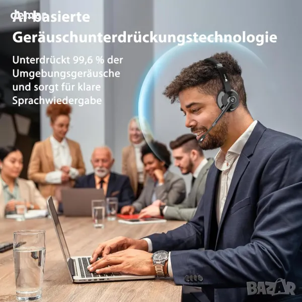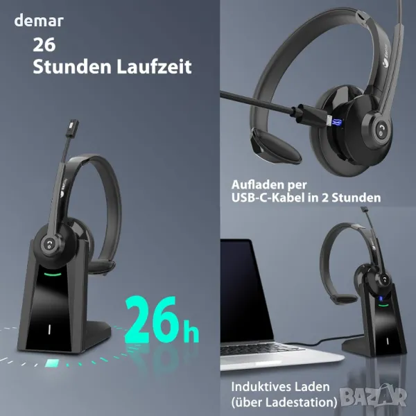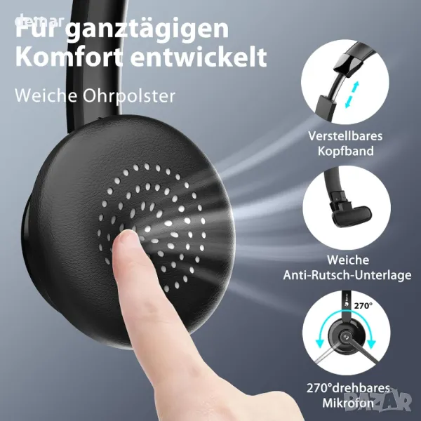 Тези безжични компютърни слушалки са оборудвани с усъвършенствана ENC технология за 99,6% намаляване на шума и ясно предаване на гласа, с вграден бутон за изключване на звука за бързо управление на звука. Предлагат Bluetooth 5.0 и USB адаптер за свързване на две устройства и стабилен обхват от 14 метра. Батерията с висок капацитет осигурява до 26 часа време за разговори, като за удобство са включени както USB-C кабел, така и зарядна станция. Проектирани за комфорт, те имат меки възглавнички за уши, регулируема лента за глава и въртящ се на 270° микрофон, което позволява да сте наясно с обкръжението по време на употреба.