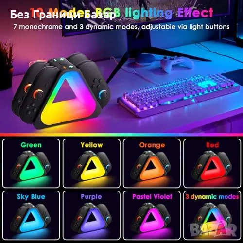 Нова Зарядна Станция за Switch 2 Joy-Cons – 4x Контролера, RGB Осветление