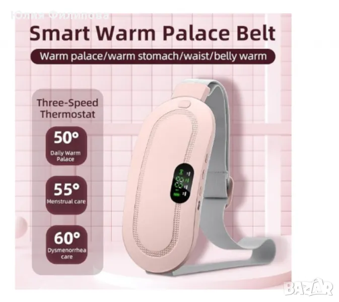 Тип продукт: Уреди за здраве и красота;Менструалният термо колан е идеалното решение за жени, които страдат от менструални болки, спазми, отпадналост или напрежение в областта на кръста и корема. Съчетавайки инфрачервено загряване и вибрационен масаж, той осигурява бързо и ефективно облекчение, като подпомага кръвообращението и отпуска мускулите. Подходящ е както за използване у дома, така и в офиса или по време на пътуване.Материал: Мек текстил + отоплителен елемент + вибриращ мотор;Температурни нива: 3 (45°C, 55°C, 65°C;Масажни режима: 4 вибрационни програми;Захранване: USB Type-C / microUS;Батерия: Вградена, литиево-йонна (до 2–3 часа работа с едно зареждане);Размер: Универсален, регулируем;Цвят: Изпраща се според наличността в склада .
