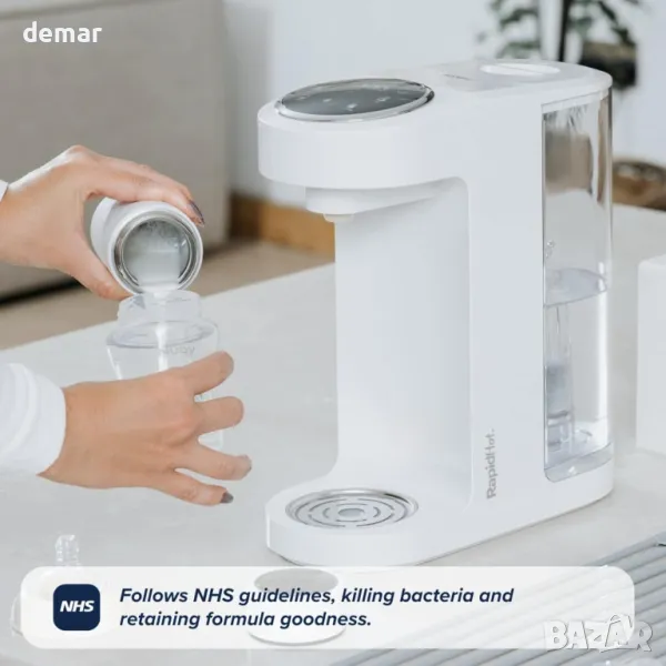 Кипва вода мигновено за бебешко адаптирано мляко, помагайки ви да приготвите мляко само за 2 минути, когато времето е най-важно. Използва преварена вода съгласно указанията на NHS и включва филтър за намаляване на примесите. Позволява точно определяне на размера на храната с функция за памет за нощни хранения. Работи тихо, за да не се безпокоят другите по време на нощна употреба. Много по-бърз от кана, идеален за безстресово и бързо приготвяне на шише.