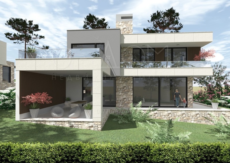 РЗП 362кв.м. и със собствен парцел от 1500кв.м.. Имота е с югоизточно изложение и прекрасна панорама. Топ място в квартал с нови еднофамилни къщи, път, ток, вода и канализация.