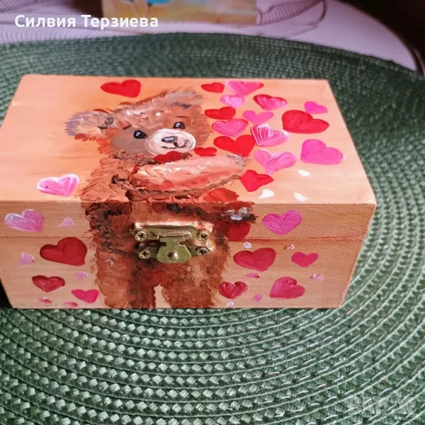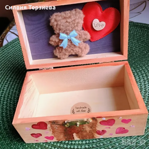 Ръчно изработена дървена кутия Love bear → Обява 50287981