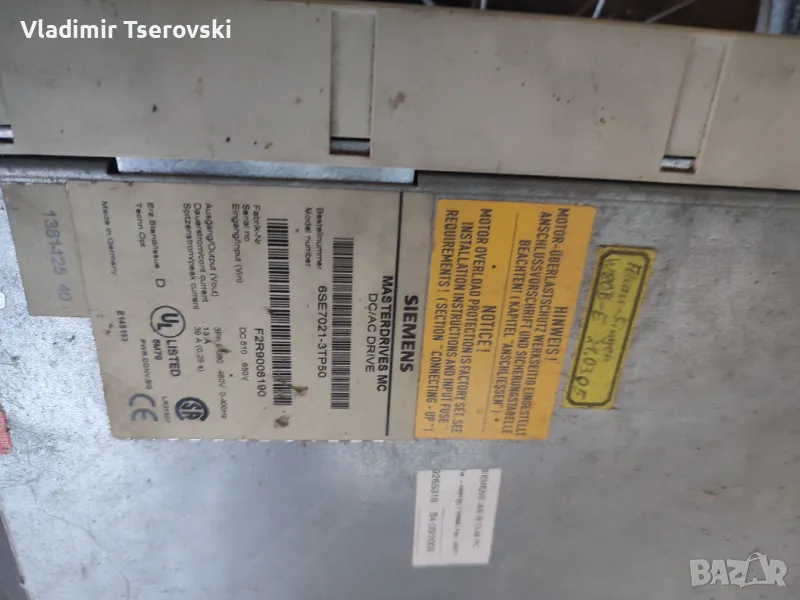 Продава се Siemens DC/AC Drive 6ES7021-3TP50. Не е тестван дали работи. При интерес позвънете на посочения телефонен номер.