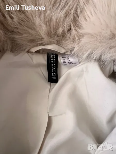 Яке от габардин с пухкава яка. Модела е слаган само веднъж.