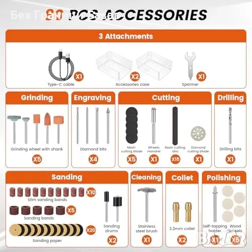 Нов Ротационен уред комплект за шлайфане, рязане и пробиване 80 части