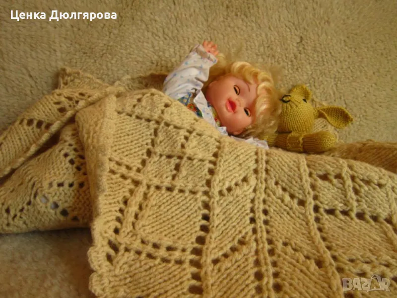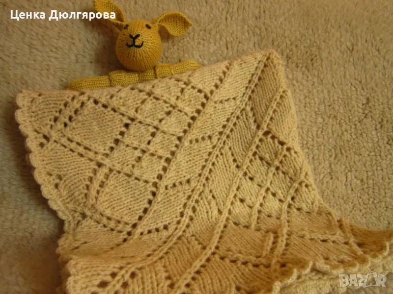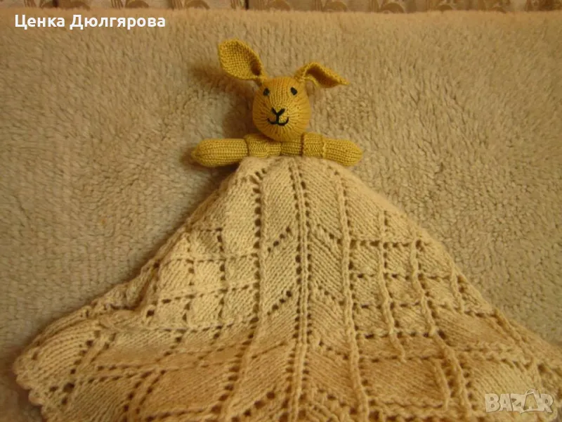 Вълнено одеялце (80 см / 80 см) с подвижна играчка зайче. → Обява 50291324