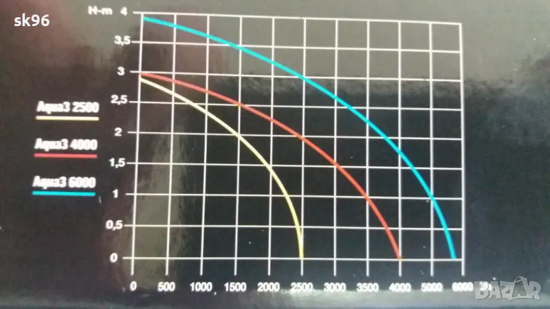 Водна фонтанна помпа с дебит 3850 л./час, воден стълб 3.0 метра, Мощност 50 watt, 10 метра кабел. Включен струен комплект с три вида накрайници и трипосочна регулируема връзка.