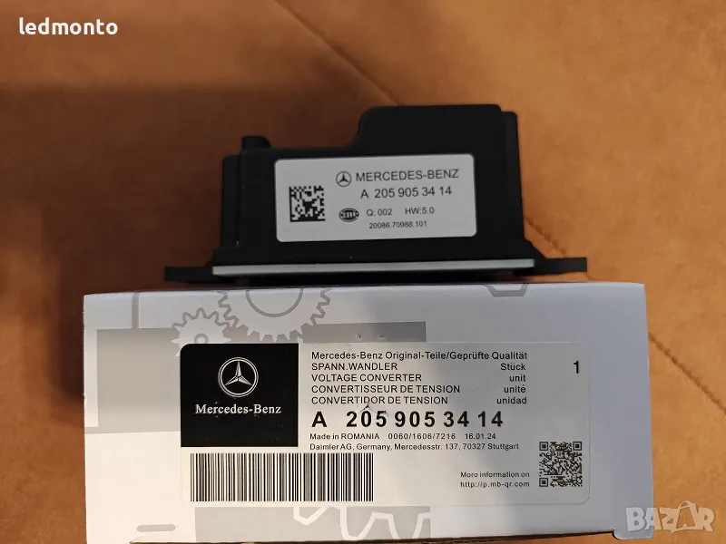 Оригинален трансформатор A2059053414 (замества A2059052809), предназначен за стабилизиране на напрежението в системите на Mercedes-Benz C-Class (W205), E-Class (W213) и GLC-Class (X253/C253) от 2014 до 2018 година. Поддържа правилната работа на старт-стоп системата и допълнителната батерия, като осигурява надеждно електрозахранване дори при натоварване. Компонентът е ключов за удължаване живота на акумулатора и за безпроблемно функциониране на електронните модули.