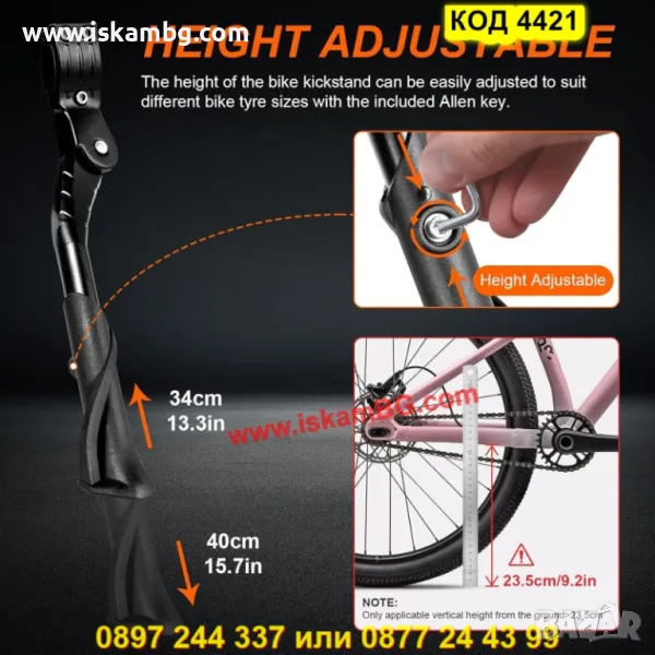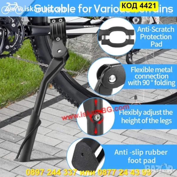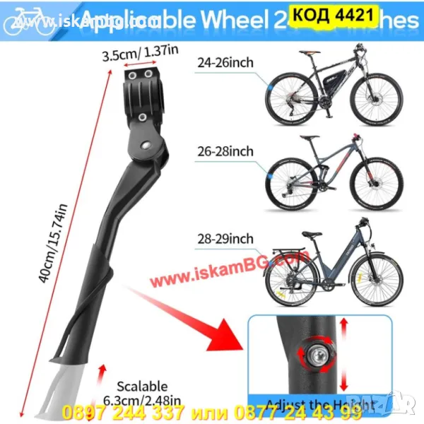 Тази разтегателна стойка е съвместима с повечето велосипеди с размер на колелата между 24 и 29 инча. Идеалното допълнение за стабилно паркиране на вашия велосипед у дома или навън.