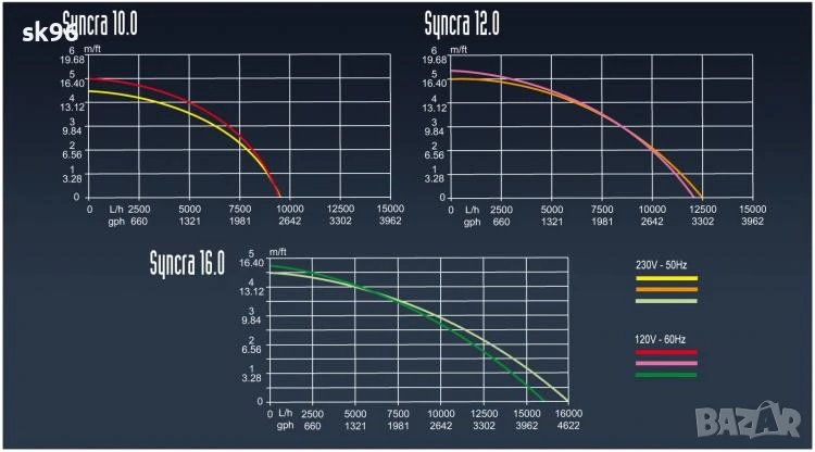 Водна фонтанна помпа с дебит 12800 л./час, мощност 125 watt, воден стълб 5.0 метра, 10 метра кабел. Размери: 36 х 26 х 14 см.