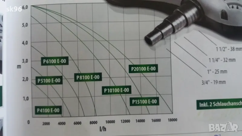 Водна фонтанна помпа с дебит 12500 л./час, мощност 140 watt, воден стълб 5.9 метра. Размери: 42 x 24 x 15 см.