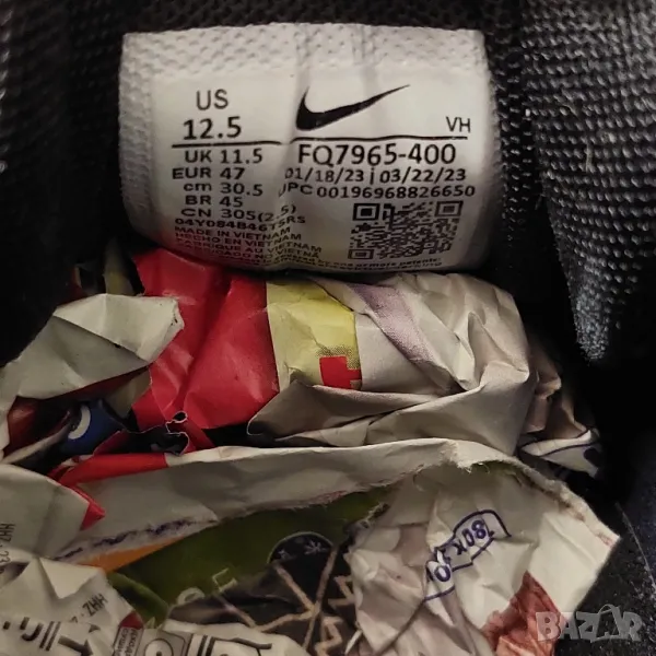 по цялата дължина , е с чисто бяло покритие. И накрая, външните подметки са в предимно черно покритие, като същевременно имат тъмносини акценти.