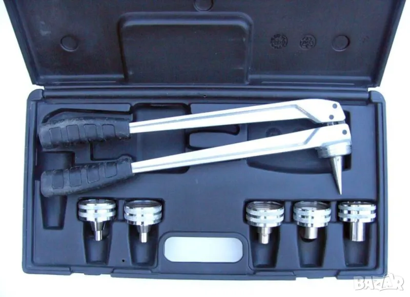 • АРТИКУЛ: Оригинал Френски Професионален Специализиран К-т ТРЪБОРАЗШИРИТЕЛ 6+1 части с Клещи и Разширителни Глави Калибратори тип цанга с 6 сегменти Раздувач Ръчна Преса за