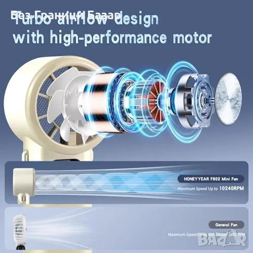 Супер турбо вентилатор с мощност до 10240RPM и скорост на въздушната струя 8м/с
