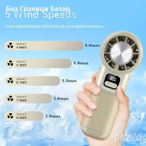 5 регулируеми степени на вятъра + интелигентен LED дисплей за оставаща батерия