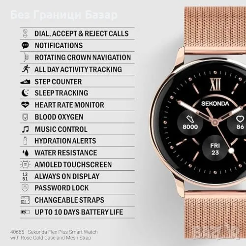Нов Смарт часовник Sekonda Flex Plus 42мм Розово Злато IP68 iOS Android