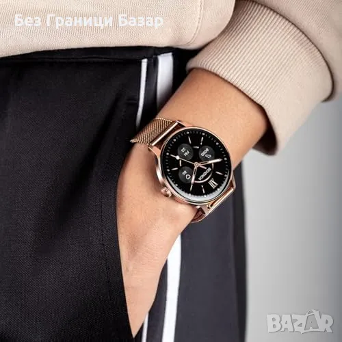Смарт часовник с елегантна мрежеста каишка от неръждаема стомана в розово злато