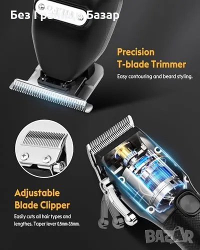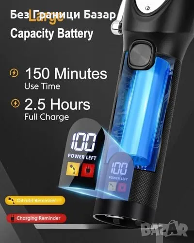 Безжичен тример с LCD дисплей – показва заряд, статус на зареждане и нужда от смазване