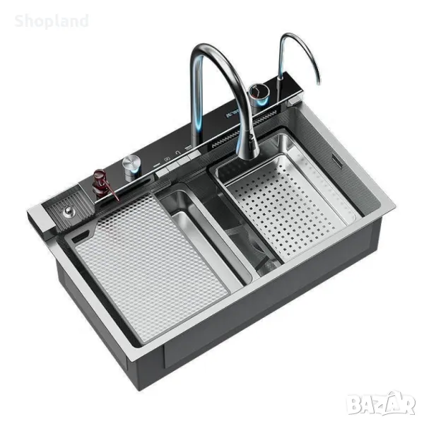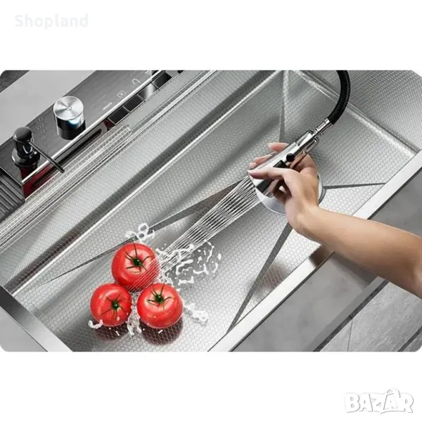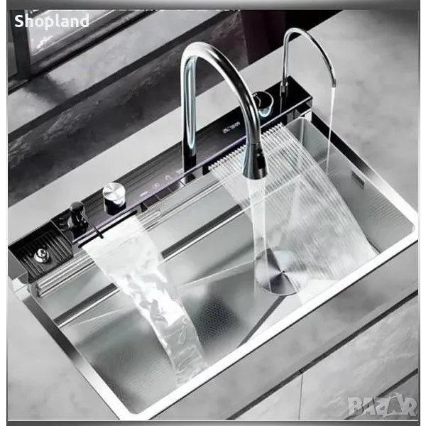 Модерна многофункционална кухненска мивка с LED цифров дисплей и водопаден смесител
