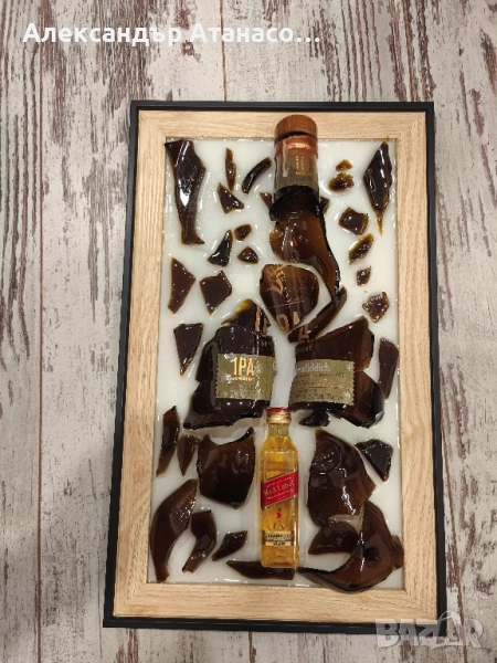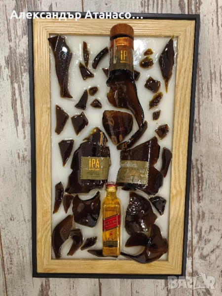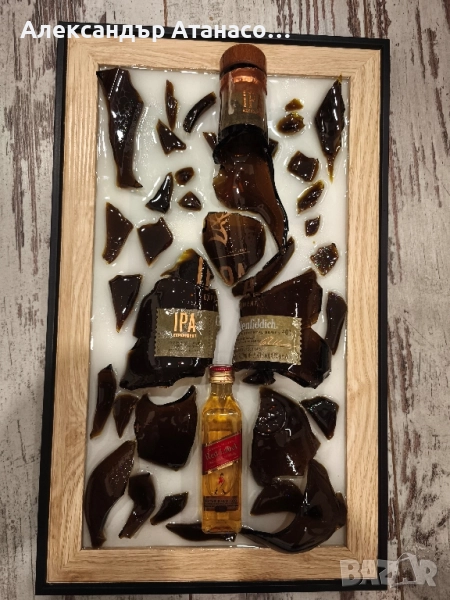 Потопете се в свят на стил и изтънченост с тези уникални картини, изработени от епоксидна смола. Всяко произведение е създадено с оригинални бутилки , превърнати в елегантни арт инсталации.