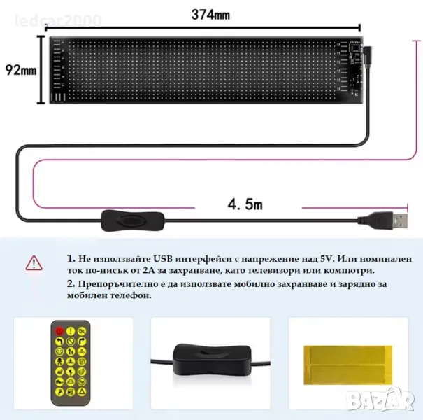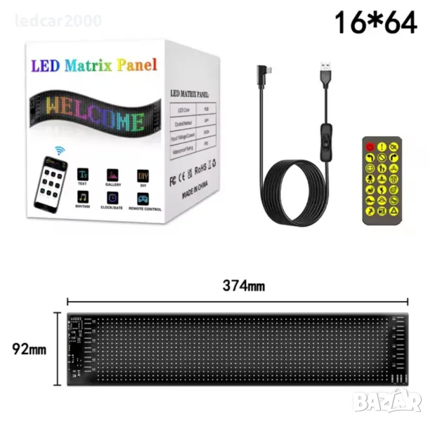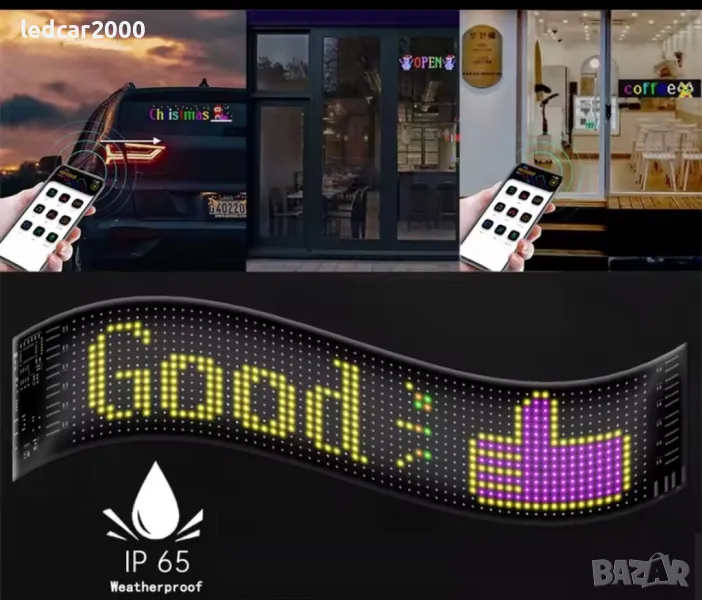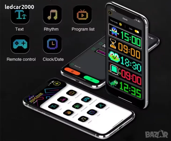 LED таблото се свързва с телефона чрез Bluetooth , а специалното приложение позволява бърза настройка на желаните анимации и текстове.