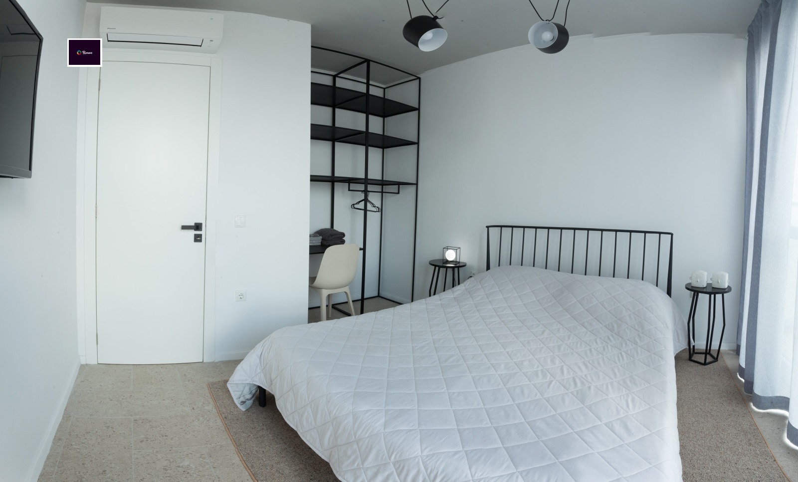 Пространството предлага една спалня (двойно легло), HD телевизор с кабелна телевизия и безплатни филми по заявка и малко работно пространство.