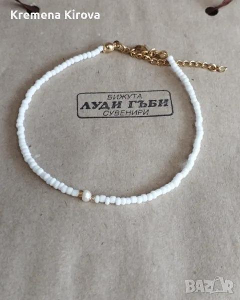 Гривни за крак с перличка, чешки мъниста и стомана. Бижута Луди гъби. Ръчна изработка. → Обява 50297599