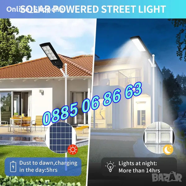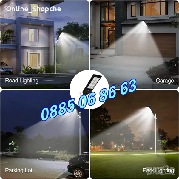 Соларна лампа LYLU 1600W с 8 секционни прожектора е предназначена за външен монтаж на височина 3 до 5 метра. Препоръчително е да бъде инсталирана на място, където слънцегреенето е по-голямо, така че вградената батерията да може да се зареди през светлата част на деня. Този модел осветително тяло е автономно, с 1600W мощност и 8 секционни прожектора. Соларната лампа може да бъде монтирана в градината или двора, където при стъмване осветлението се включва автоматично, благодарение на сензорите, намиращи се в соларния панел. Тя е изработена от висококачествени материали, които гарантират по-дълъг живот на експлоатация и издръжливост при различни атмосферни условия. Притежава вграден датчик за движение, с помощта на който при засичане на движение осветлението се включва с увеличена яркост. След 20 секунди или когато не се засича движение, светлината намалява. Тази интелигентна функция осигурява пестене на енергия и удължава периода на използване на самата лампа.