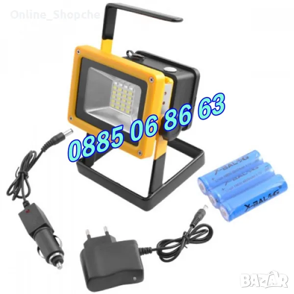 СИЛЕН LED АКУМУЛАТОРЕН ПРОЖЕКТОР + АВАРИЙНИ СВЕТЛИНИ в синьо и червено, LED Lamp