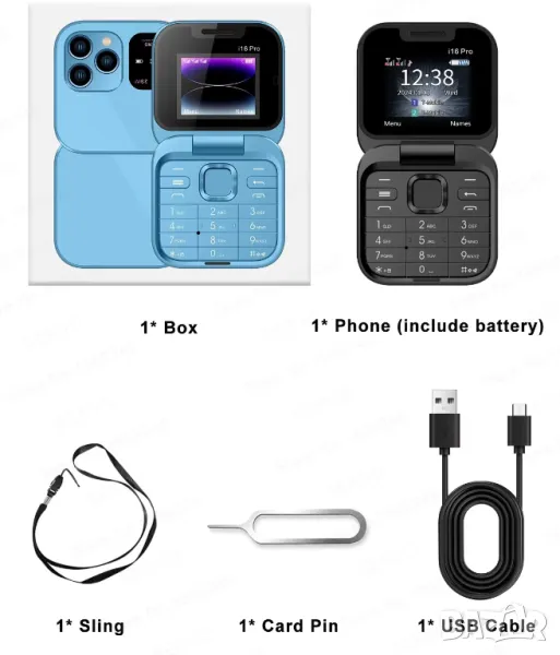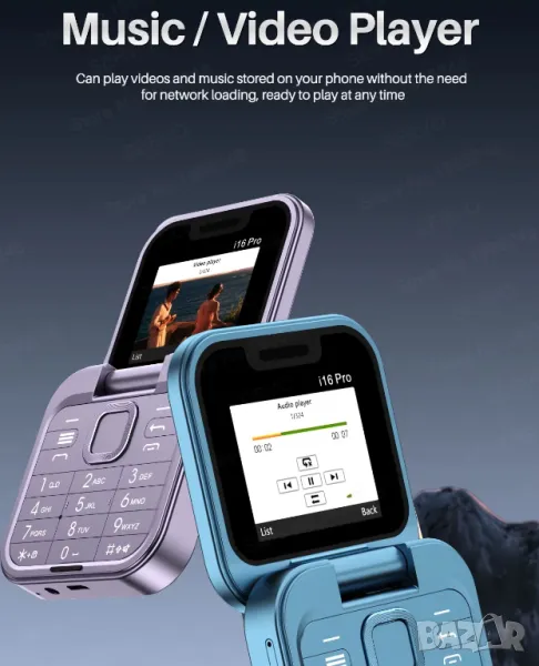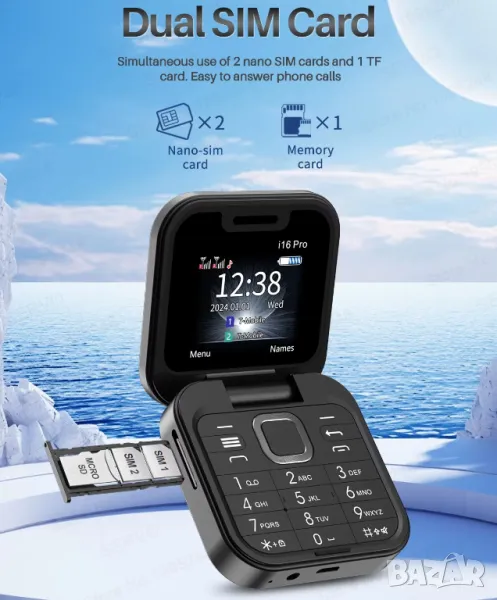 Сгъваем телефон i16 Pro, мини телефон, малък телефон, телефон с капаче, българско меню на български