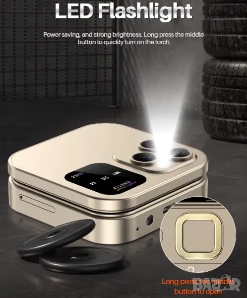 - LED фенерче: Енергоспестяващо със силна яркост. Натиснете дълго средния бутон, за да включите бързо фенерчето