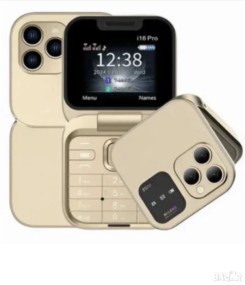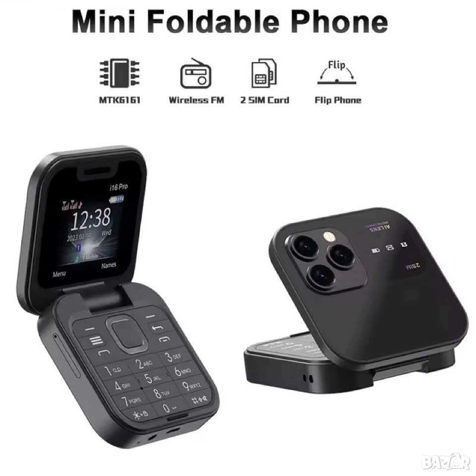 Сгъваем телефон i16 Pro, мини телефон, малък телефон, телефон с капаче, българско меню на български
