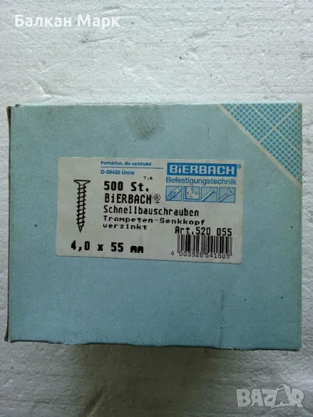ВИНТОВЕ ЗА ГИПСОКАРТОН 4x55 ММ, ПОЦИНКОВАНИ, TИП PZ (Pozidriv) – ОПАКОВКА 500 БР. 🛠