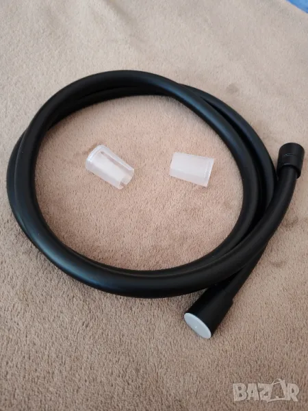 Нов черен маркуч за душ слушалка 1.50 метра, Полша с два коносувидни месингови накрайници, стандартни за всички видове батерии. Еконт, Спиди, лично предаване.