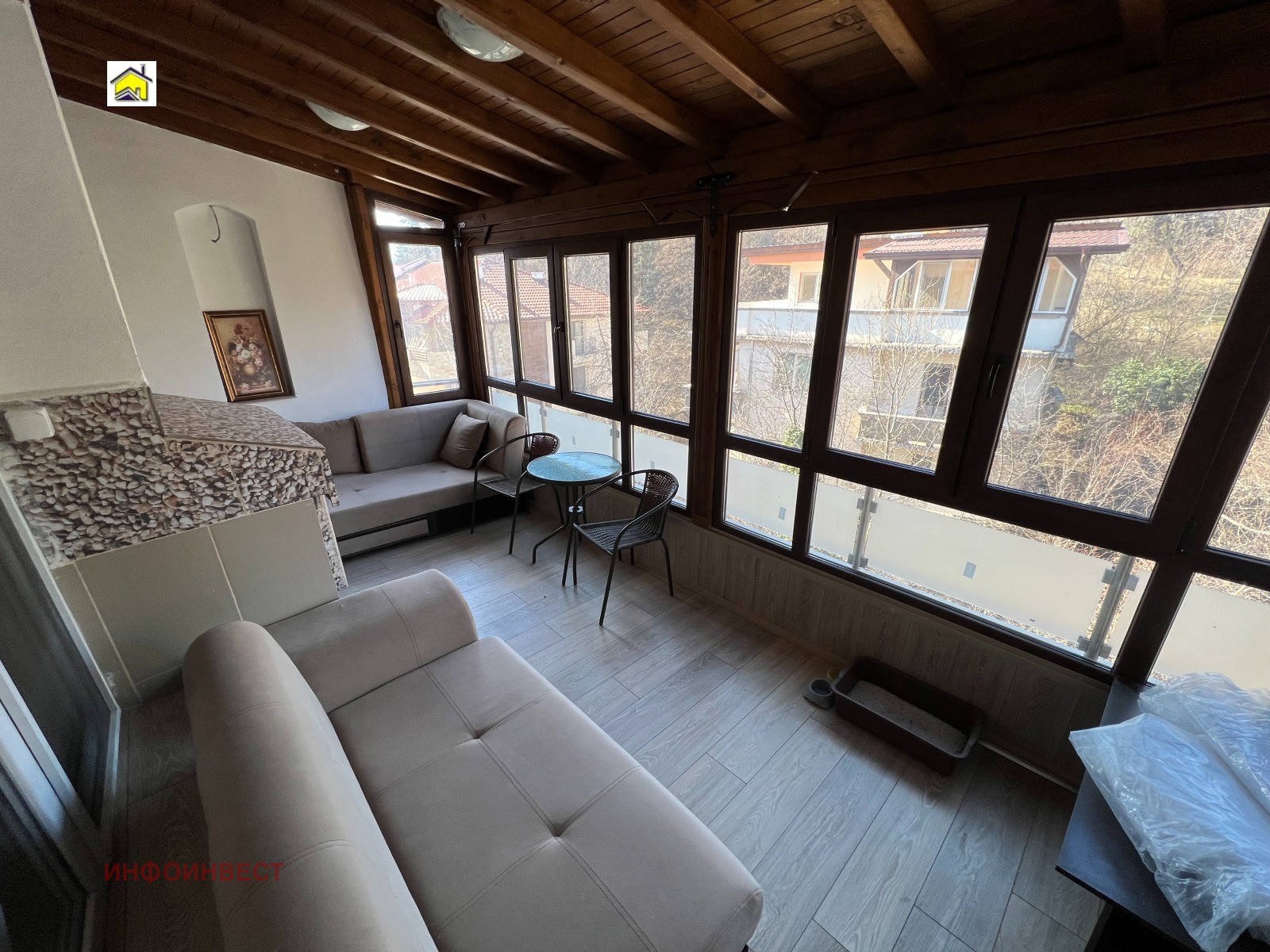 Тристаен апартамент в Идеалния център на Велинград. С прекрасна локация, близо до парк и гора. Намира се в сграда с асансьор. Състои се от дневна с кухня, две спални, голяма усвоена тераса с камина.