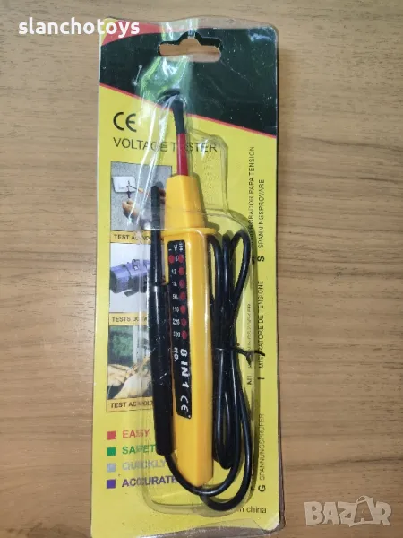 Тестер за напрежение 8 в 1 : AC/DC: 6V/12V/24V/50V/110V/220V/380V Честота: 0~60Hz Скала с светодиоди