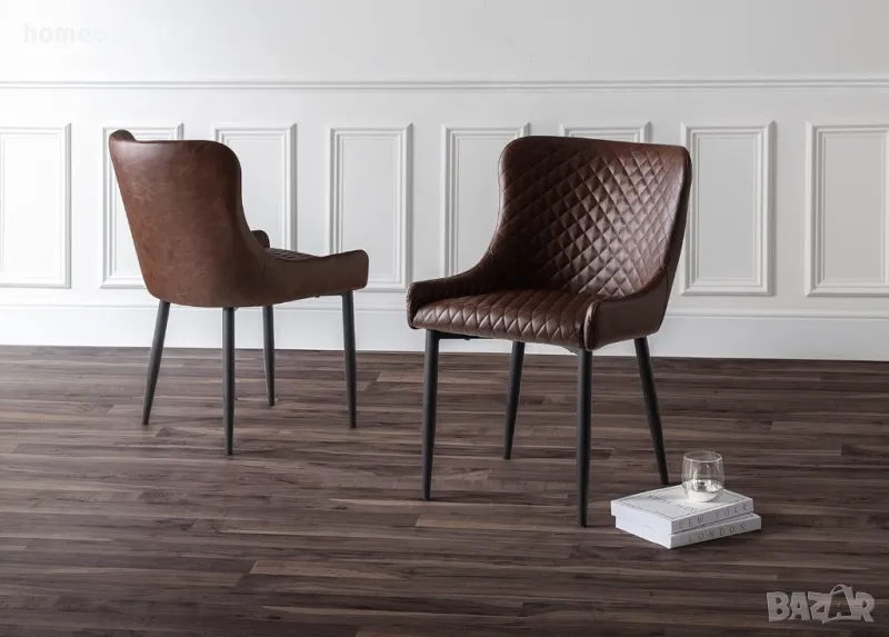 С плътна и удебелена тапицирана седалка и метални крака, снабдени с
