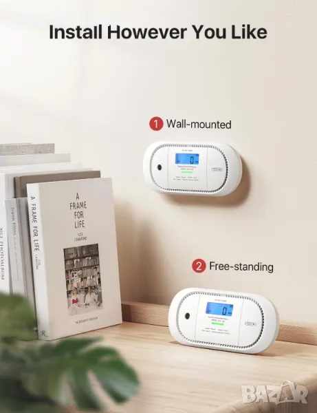 Самостоятелен дизайн: Изработен с 2 крачета, които позволяват лесното му поставяне на бюро в спалнята за незабавно и точно откриване на CO