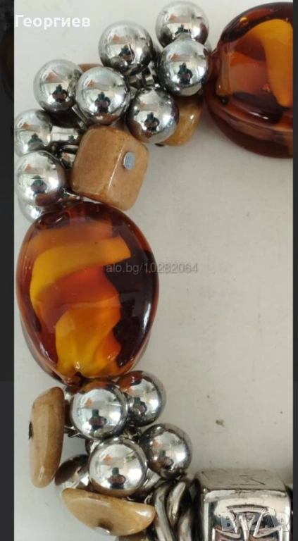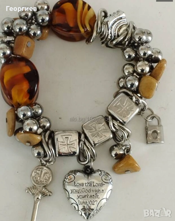 10.Гривни за ръка с естествени камъни,с църковни елементи със смес камък ,метал и кехлибар.- €25