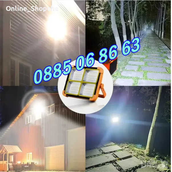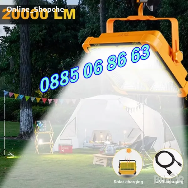 Соларна къмпинг лампа 100W, притежава акумулаторна батерия 16500mAh
