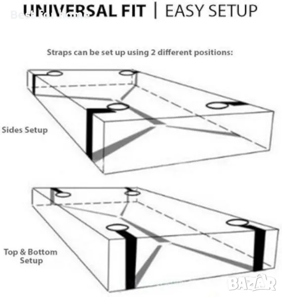 Монтаж за секунди, включва: 4 белезника и задържащи ремъци